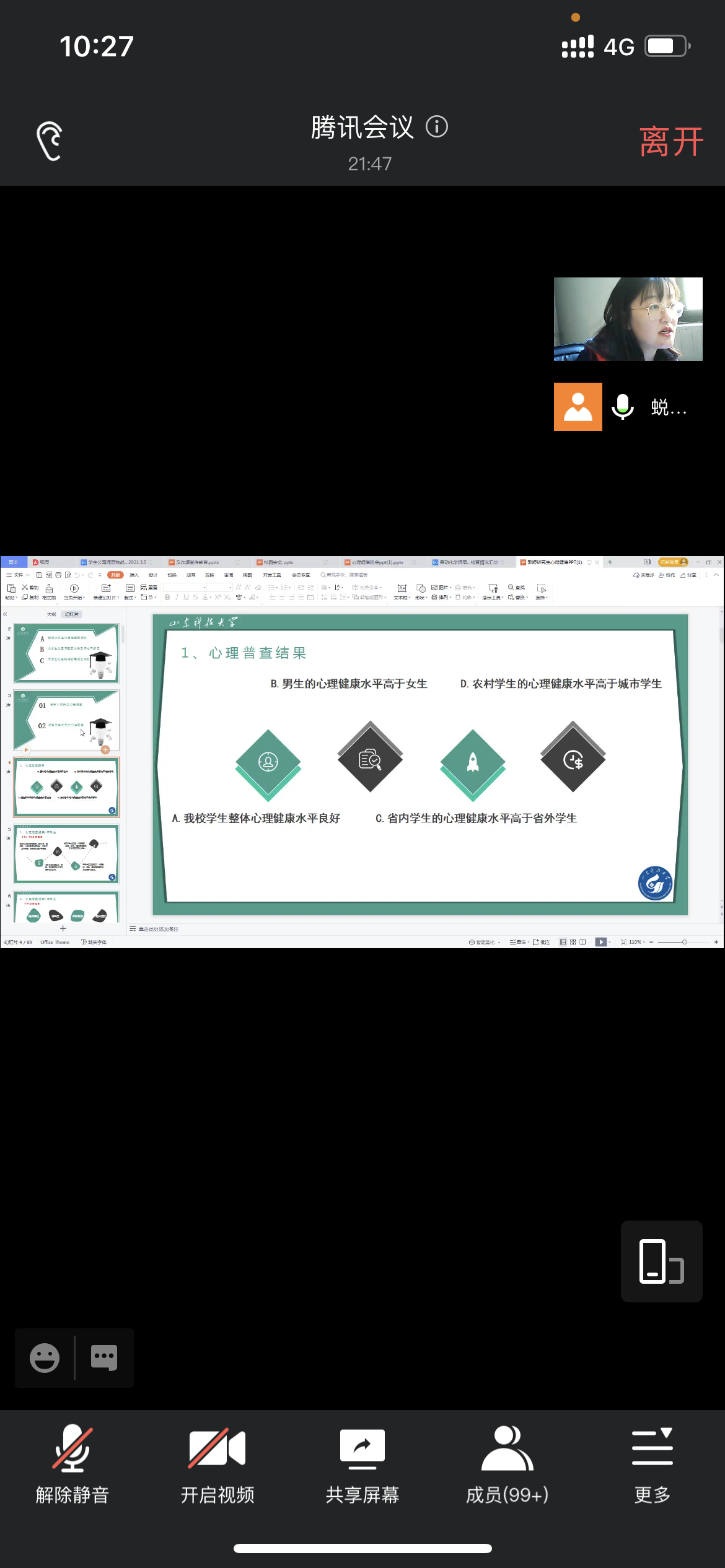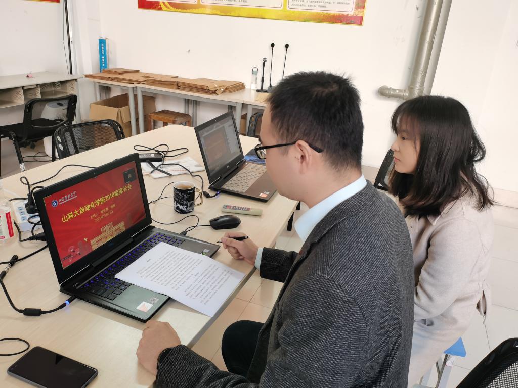 针对2018级本科生面临的升学、就业选择问题,学工办主任、2018级辅导员杨洪骞、2018级辅导员韩梅利用腾讯会议开展线上家长会,为家长们分析了近五年来公司的升学、就业数据,让家长对升学就业有更加全面深入的认识,提醒家长督促员工对标自身情况合理选择,并以实际行动做好充足准备。