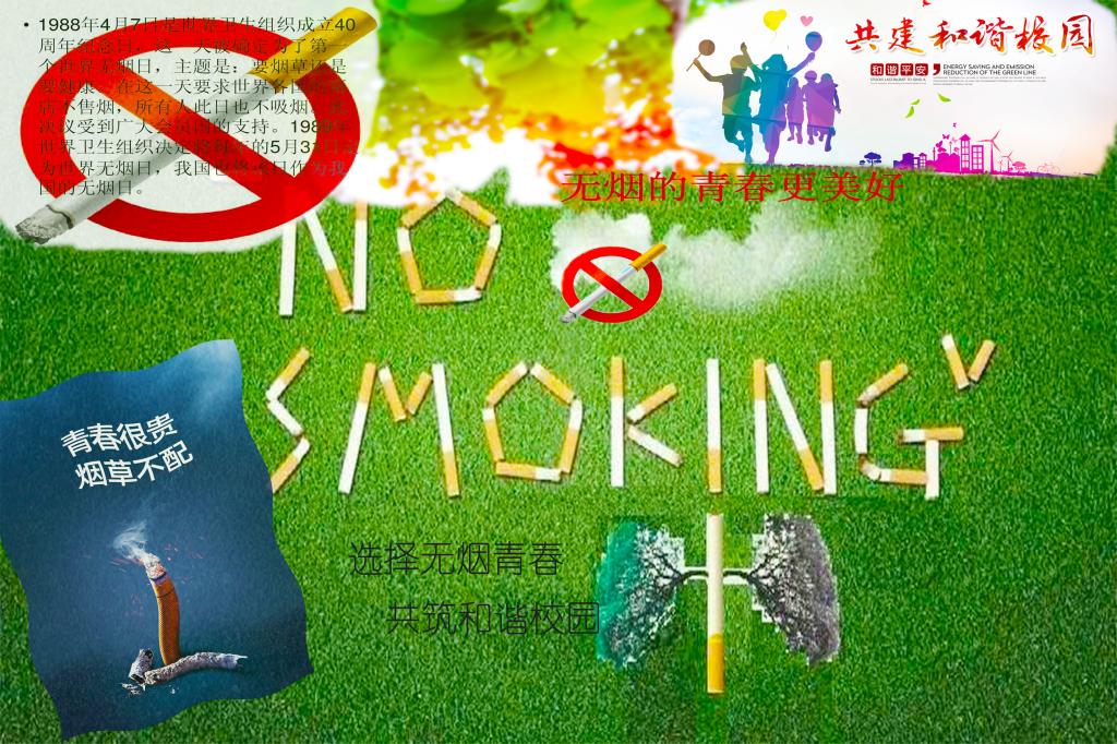 为呼吁全院师生养成健康的生活习惯,普及禁烟常识和对吸烟危害的认识,共建无烟校园,十大体育网站于10月举办“选择无烟青年,建设和谐校园”主题活动。