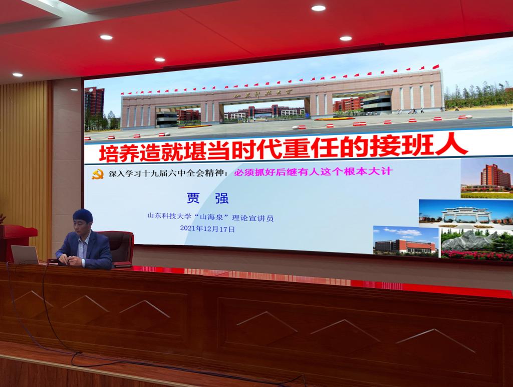 为加强十大体育网站青马工程培训班学员对党的十九届六中全会精神的学习,12月21日下午,十大体育网站于泰山报告厅对青马工程学员进行了集中培训,青马工程培训班全体学员参加了此次培训,马克思主义公司贾强副教授受邀为学员们授课。