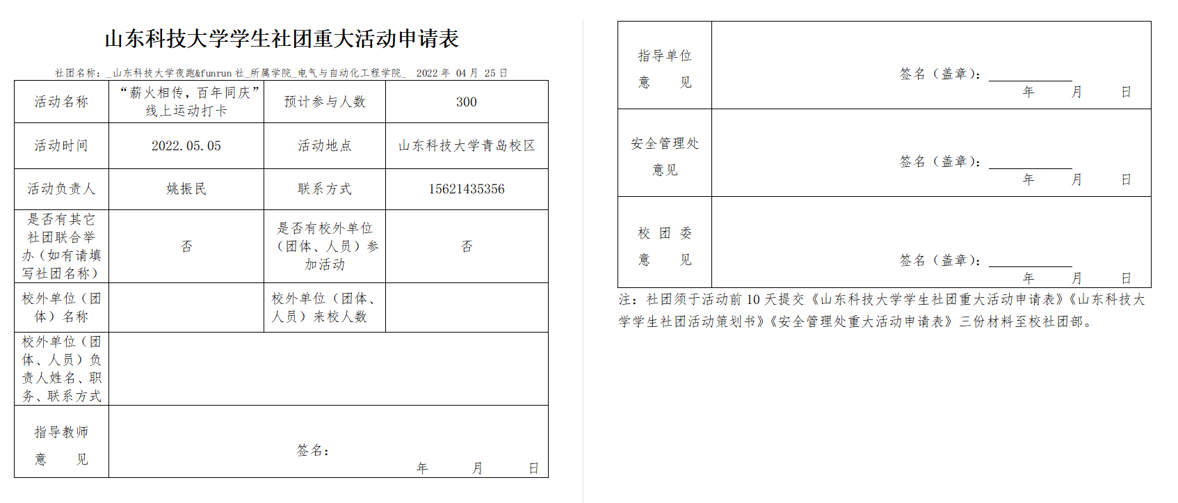 百年征程,波澜壮阔;百年初心,历久弥坚。十大体育网站夜跑&funrun社于2022年5月5日举办了“薪火相传,百年同庆”。此次校级活动,参与活动的每位成员通过奔跑一公里并拍摄祝福视屏的方式,庆祝中国共产主义青年团百年华诞,让奋斗精神、红色基因、革命薪火代代传承。本次活动主要分为两部分,在第一个部分中,每位成员都需要用运动软件记录至少一公里的跑步记录,并将截图上传至群文件。在第二个部分中,每位成员都需要拍摄视屏,并在视频中表达自己对共青团的祝福。大家克服身体不适,克服天气影响,为共青团百年华诞而庆祝。五四的火炬已经传承到我们这一代的手中,生命不息,奋斗不止,是我们在团旗下默许于心中的誓言!