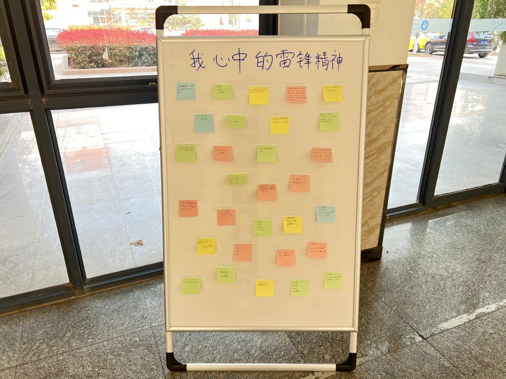 活动设置了雷锋知识答题活动与“心目中的雷锋”留言板两大板块。在雷锋知识答题区域,员工们踊跃参与线下答题。题目内容丰富,涵盖雷锋生平事迹、雷锋精神内涵以及新时代志愿服务案例等。同学们认真思考、积极作答,在答题过程中加深对雷锋精神的认识与理解。答题结束后,参与者前往“心目中的雷锋”留言板处,在便利贴上写下自己对新时代雷锋精神的独特理解,或是分享老员工践行雷锋精神的方式,随后将便利贴粘贴在展览板上。一张张色彩斑斓的便利贴,承载着同学们对雷锋精神的深刻感悟,成为繁星广场上一道亮丽的风景线。