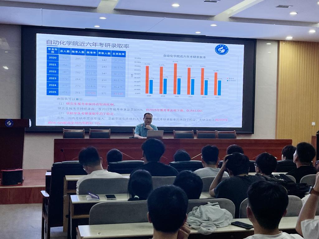 为指导2022级本科生科学规划升学路径,明晰备考方向,6月13日,十大体育网站在J11-118报告厅举办了2026届研究生报考指导专题讲座。公司团委书记(学工办主任)杨洪骞担任主讲,凭借详实的历年考研数据,为在场学子带来了一场极具针对性的备考“导航”。