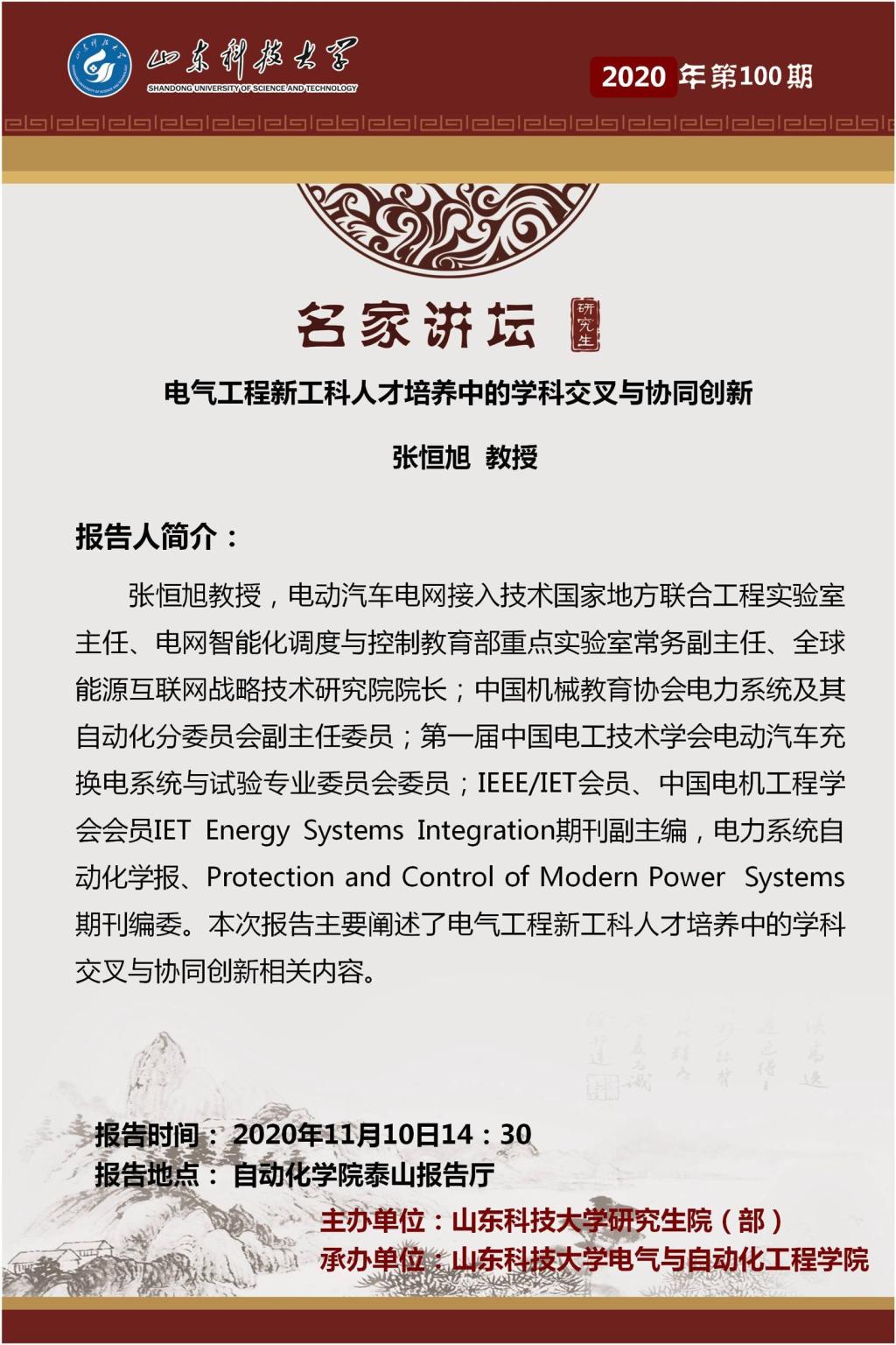 十大体育网站承办第100期“名家讲坛”:张恒旭教授