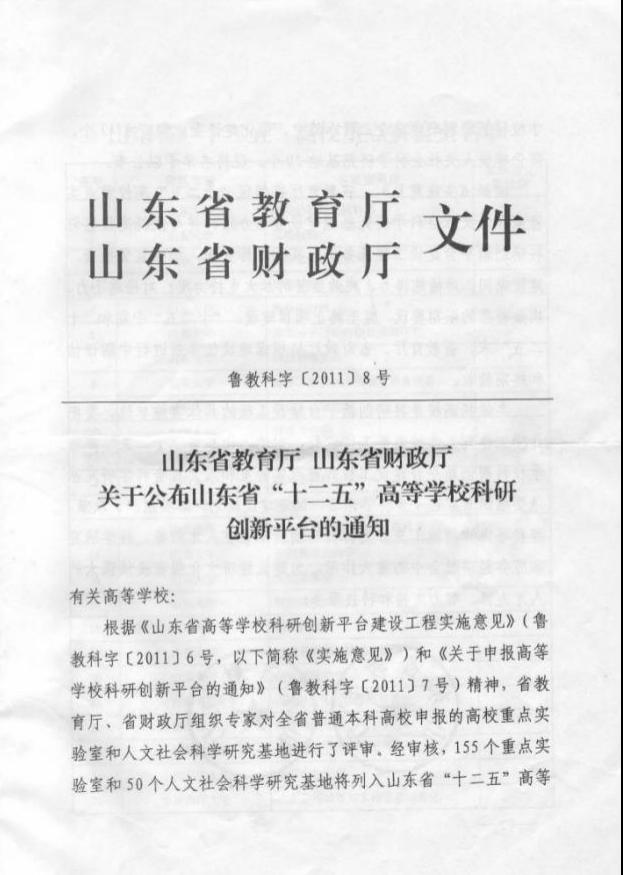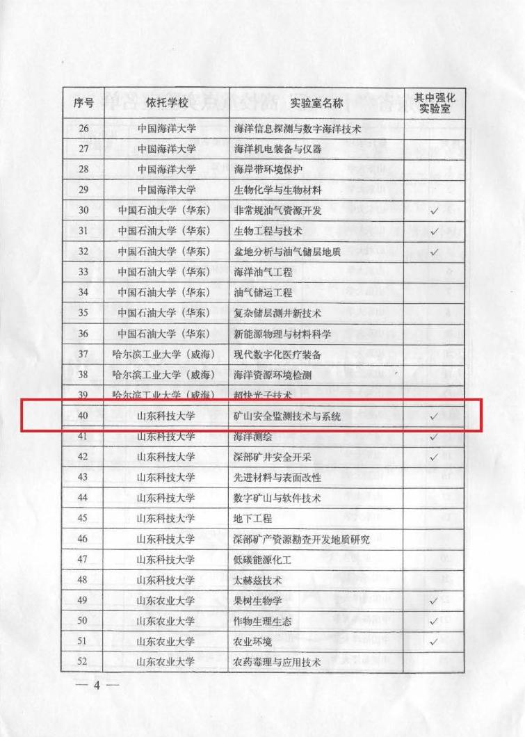科研平台:山东省矿山安全检测技术与系统强化建设重点实验室