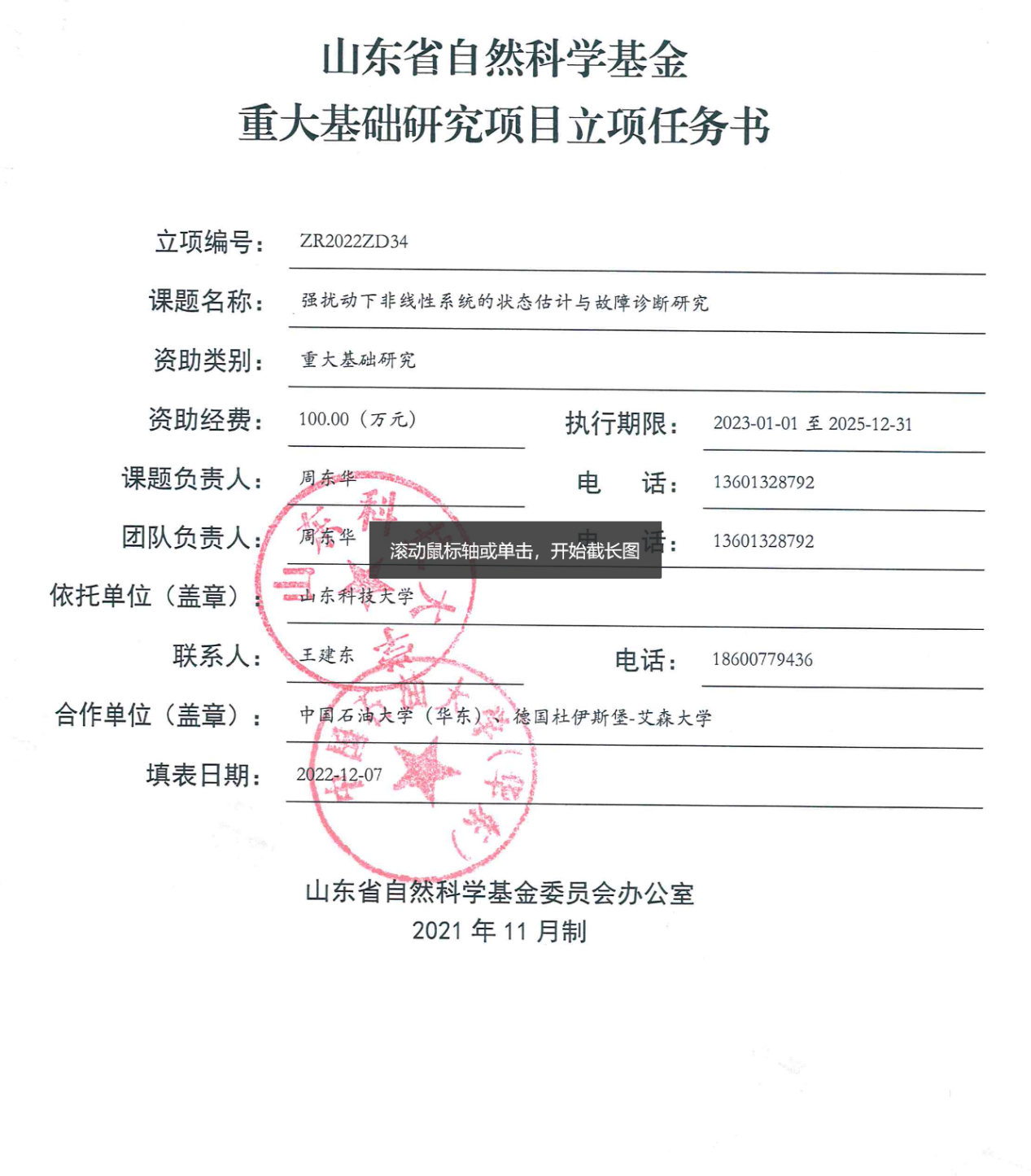 山东省重大基础研究项目1
